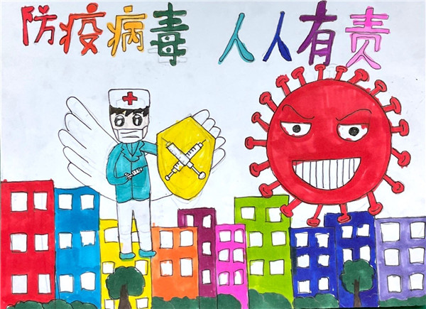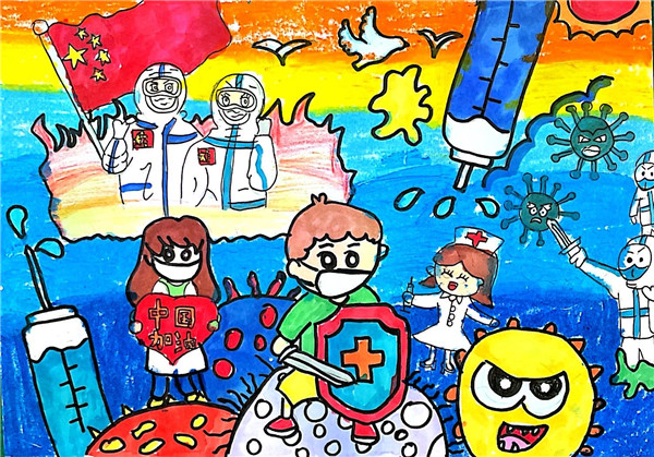 龙潭学子们通过学习疫情防控的有关知识,用天马行空的想象力、稚嫩的小手、斑斓的画笔,描绘出一幅幅生动童趣的作品。这些作品不仅展现着抗击疫情的坚定决心,也传递着对抗疫一线工作人员的感恩之情,更表达着对党和国家的崇高敬意。