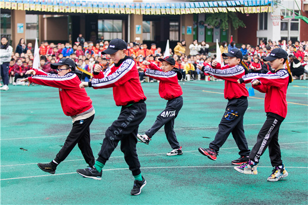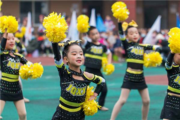 学校的彩旗方队、啦啦操社团及三年级四班同学为开幕式带来了精彩的表演。优美的舞姿、矫健的身手,随韵律跳动,感受运动的快乐,整个舞台因同学们而璀璨光彩。为了迎接本次嘉年华,金泉学子都参与设计了本班的篮球队标,将体育和艺术相结合,同学们的一笔一划构成了手中的班级篮球旗。