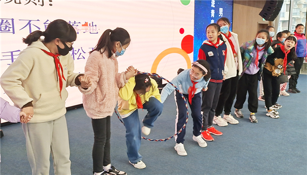 “拍拍背”的互动游戏,让同学们感到有趣、放松,不同班级之间的同学通过游戏熟悉了起来。