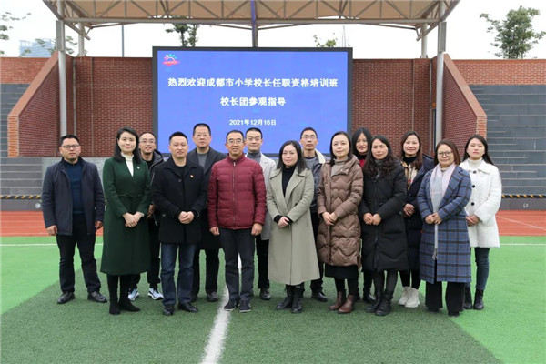 2021年12月16日上午,成都市小学校长任职资格培训班一班2组全体学员在李建波导师的带领下,来到四川天府新区华阳小学,开启本组交叉跟岗研修活动。此次活动旨在通过学习各点位学校发展规划、学校校园文化建设、学校课程建设、教师队伍建设、学校内部管理等方面加强学员交流,切实提高培训成效。