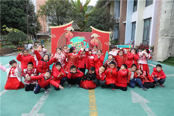 红彤彤的灯笼、喜庆的“福”字、鞭炮、对联和窗花……老师和小朋友们把教室装点得喜气洋洋,一起开启新年新篇章。