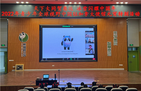 元宵佳节来临之际,成都市熊猫路小学的11名同学参与2022年青少年全球视野项目“天下大同贺奥运,冰雪闪耀中国年”中国驻加拿大大使馆元宵特别活动,与成都市树德小学、天鹅湖小学、电子科大附属实验小学,加拿大诺克戴尔小学、半月湾小学的同学一起,线上共贺奥运、共度元宵。