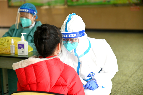 在现场组织人员的引导下,以班级为单位,戴口罩、测温、严格按照一米线距离等要求,依次进行人员信息采集和咽拭子采样等环节,采样结束后,组织人员引导受检师生尽快沿指定路线离开检测点。