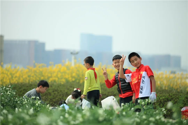 三年级的哥哥姐姐们已经是第二次种植向日葵了,作为“老师傅”,他们自信满满地当了小领队,带着一、二年级的小朋友们体验劳动的快乐。