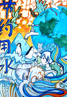 为此,成都市抚琴小学学子拿起画笔,创作出了一系列精美的“世界水日”宣传画,发出“珍惜水资源”的倡议。