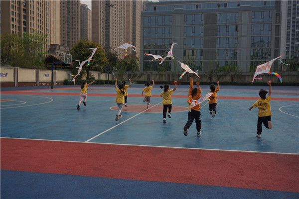 孩子们兴奋地握紧手里的风筝,不停地奔跑着,不时回头、拽线、松线,只见一只只风筝在校园上空争奇斗艳,孩子们欢呼雀跃、兴奋不已。放风筝是极具传统民俗特色、古老而又有生命力的文化活动。