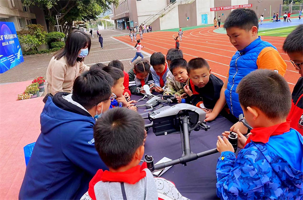 随后,来自成都市航空航天产业联盟单位携恩科技的专家老师,则以“女娲补天”和“嫦娥奔月”等中国古代神话传说为切入点,生动讲述了中国航天事业的发展历程、技术演进以及背后的传承故事。同时还为大家重点介绍了飞机飞行的主要动力原理、滑翔机的结构、飞机的姿态控制、多旋翼飞行器机体结构和飞行原理以及无人机在航拍摄影、农业喷洒、疫情防控、物流运输领域的重要应用。“这次来参与活动主要想帮助孩子们初步了解无人机,培养更多热爱无人机的青少年。”携恩科技的马老师说。