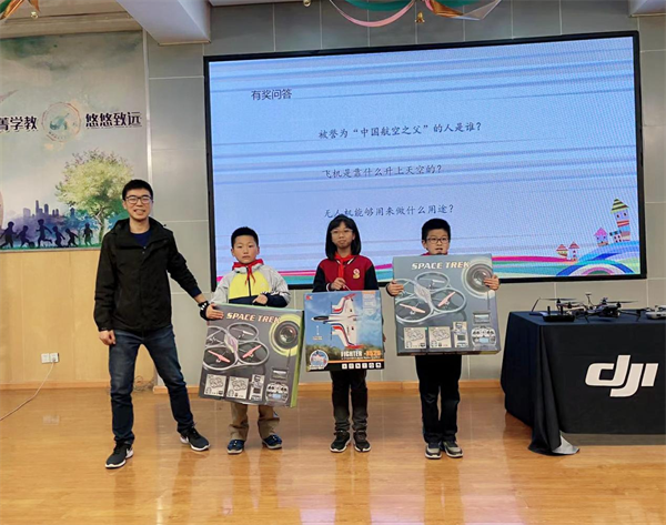 为了帮助青少年更好地巩固无人机知识,活动还特别设置了有奖互动环节,专家老师为学生们准备了无人机知识小问答,同学们踊跃作答,三位优秀的同学赢得了由艾格拉斯泛娱乐国际孵化器、四川希有空间品牌管理有限公司提供的无人机大奖。