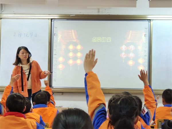 课上,赖老师从孩子们的兴趣出发,以欢快音乐导入的形式,让孩子们在课堂上集中注意力,让他们自主学习探究识字方法——加一加、减一减、换一换、比一比。赖老师出示图片激发学生的想象,感受中国传统节日的魅力,通过联系生活,让同学们知道传统节日的日期和习俗,体会课文表达的感情,增强学生对家乡、祖国的热爱之情。整堂课气氛活跃,每个孩子都积极参与其中,勤于思考。