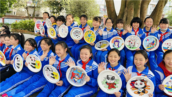 2022年4月2日下午,双流区东升小学开展第17届艺术节美术类集体赛,同学们围绕“爱成都·迎大运”主题在纸盘上进行现场绘画创作。