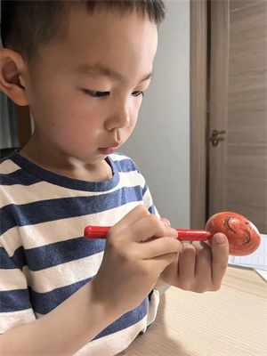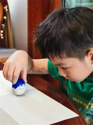 在春分那天,很多人都会做“竖蛋”活动。选择一个光滑匀称、刚生下四五天的新鲜鸡蛋,轻手轻脚地在桌子上把它竖起来。这种游戏玩法简单、趣味横行,深受人们喜爱,故有“春分到,蛋儿俏”的说法。小园宝们可不会缺席这么趣味十足的小实验!只见一个个鸡蛋在小园宝的手中被立了起来。