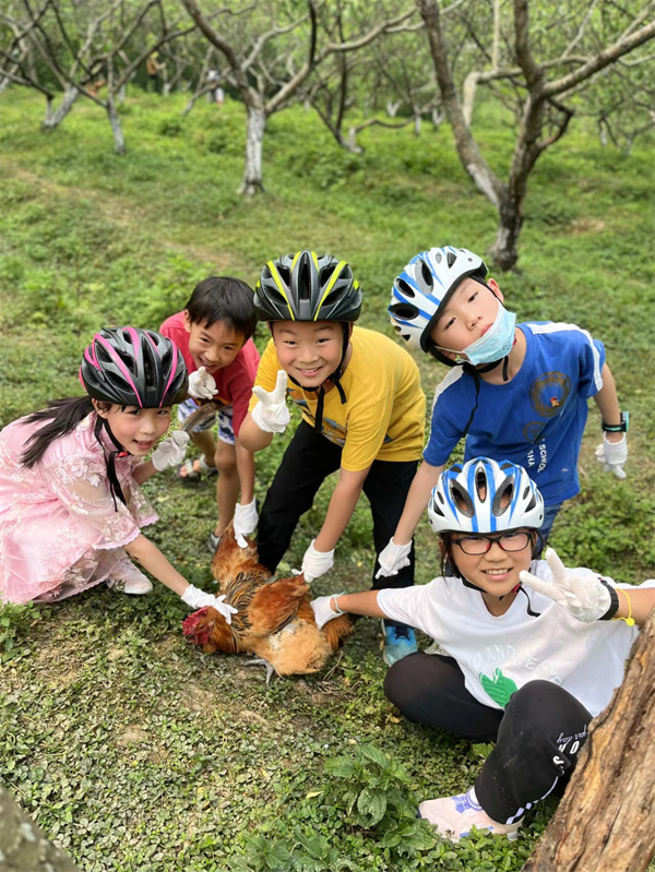在农场里,同学们见到了在城市里难得一见的原生态土鸡。捡拾土鸡蛋、捉鸡,虽然气喘吁吁,但大家感受到了乡村生活的乐趣。