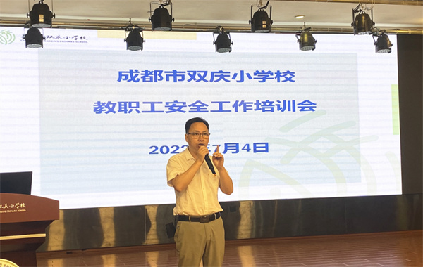 7月4日上午,成都市双庆小学校邀请成都市消防宣传中心的李教官对全体教职员工进行消防安全专题培训。
