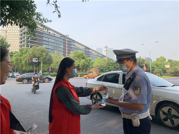 在天华二路的十字路口,陈曦校长穿着志愿者的红背心,不断劝导每一位行人走到斑马线安全地过马路,“现在的人都不会觉得你管闲事,一劝就过去了,所以这种劝导还是很有必要的。”