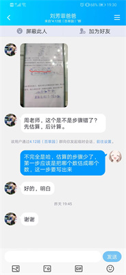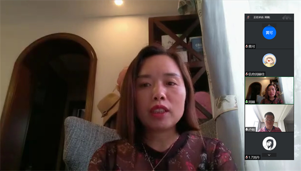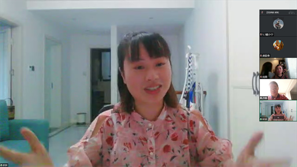 数学组的周霞老师也分享了她线上教学的心得。由于新学期接手了新的班级,周老师就“如何建立对学生的了解以及获得家长的信任”进行了分享。她讲到,将学习资源发送给学生之前,自己会提前反复观看视频,并将需要暂停的时间节点记下,然后随视频一起发送给家长,争取在提高学生学习效率的同时,还能减轻家长的压力。她的种种落到实处、落到细处的工作,获得了家长的一致认可和信任。作为一名扎实肯干的新老师,周老师分享的方法其实万变不离其综——将教学工作落到细处,并想家长之所想,那么家长对老师的信任也就是自然而然了。