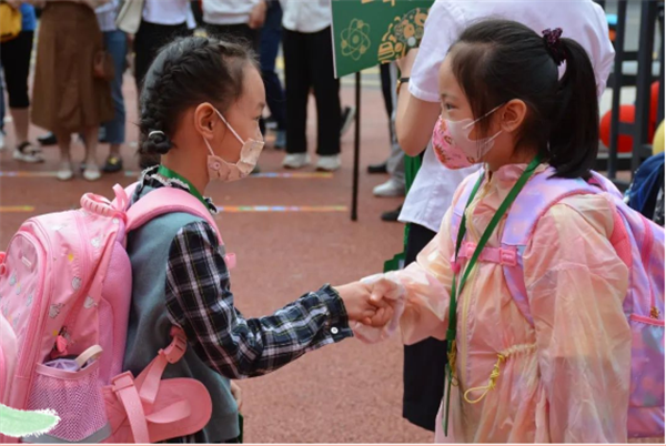 老师们也早已迫不及待地等待在教室门口,亲手为孩子们佩戴姓名牌,欢迎孩子们的到来,“恭喜你成为小学生啦!”正式开启了孩子们小学六年的美好生活。