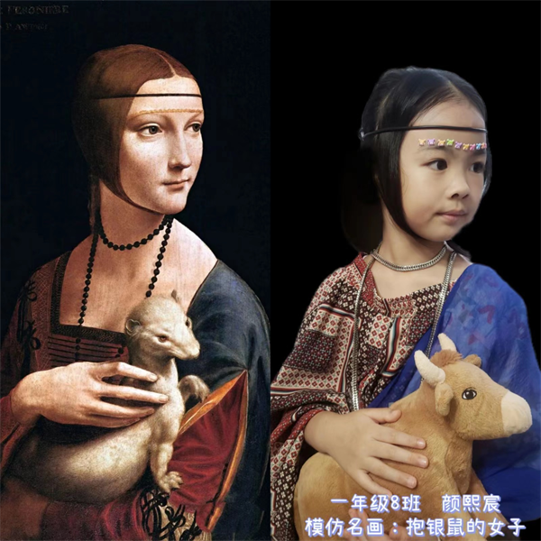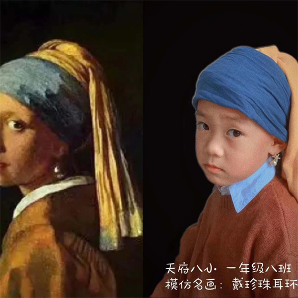 四川天府新区第八小学(以下简称:天府八小)一年级八班开展了一场主题为“趣味模仿”的线上活动。通过模仿名人名画,致敬经典的方式,为同学们提供了一个线上展示自己、相互认识和交流的舞台。