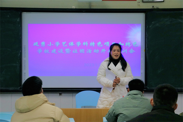 坚持“五育并举”理念,加强学生特色活动建设。在黄主任和杨主任的带领下,体艺组开展了延秀小学“特色项目特色学校”活动指导培训会。首先,杨良举主任对教育局印发的“双特”项目开展方案进行解读和指导,要求大家积极开展特色项目申报和开展,完善特色课题的详细阶段计划。同时为积极推进社团工作的开展,学校计划两周开展一次社团宣传活动。