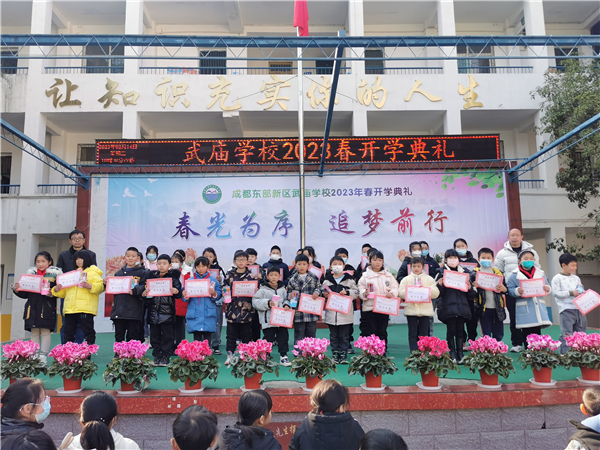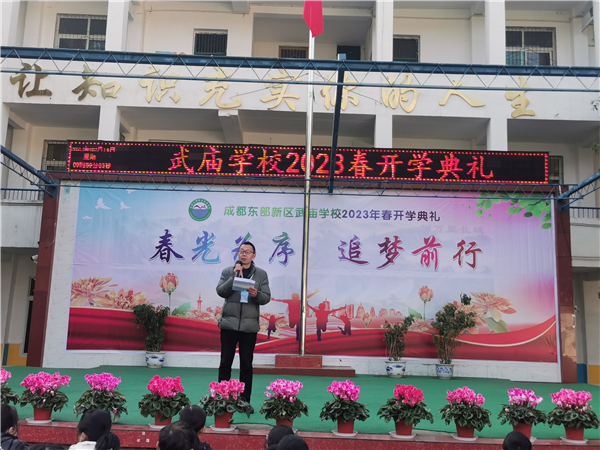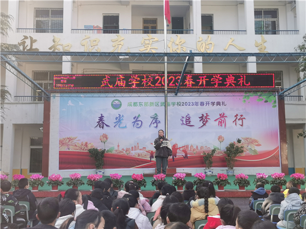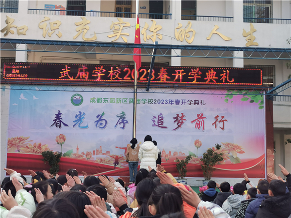 2月14日,成都东部新区武庙学校的学子们参加了以“春光为序,追梦前行”为主题的开学典礼,新学期正式起航。
