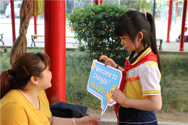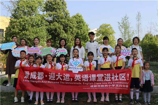 阳光明媚,流光溢彩,4月16日上午,成都市胜西小学文兴分校英语微课堂进社区啦!在学校的组织下,大运小使者和家长志愿者们积极投身“大运英语进社区”活动,旨在带动社区居民更加深入的了解大运,学习大运日常英语。