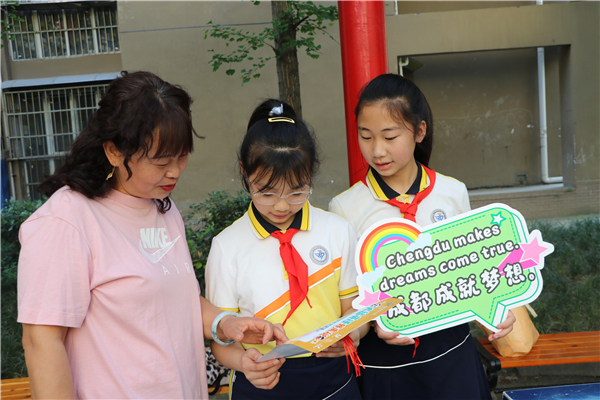 大运小使者们身体力行,帮助社区居民打通“语言关”,用英语让浓厚的大运文化走进社区生活,力求让每位社区居民能用英语展示成都的热情与好客,营造出全民支持大运、参与大运、共享大运的热烈氛围。