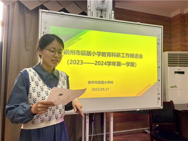 9月27日,崇州市辰居小学召开了新学期科研工作会。参与本次会议的有辰居小学副校长杨智、教科室主任何利以及学校各年级、各学科的科研骨干老师们。 首先,何主任对2022-2023学年度科研工作内容进行回顾。何主任既肯定了大家在过去一年工作中的努力和成绩,也对过去一年科研工作中的不足之处提出了可行性的建议。