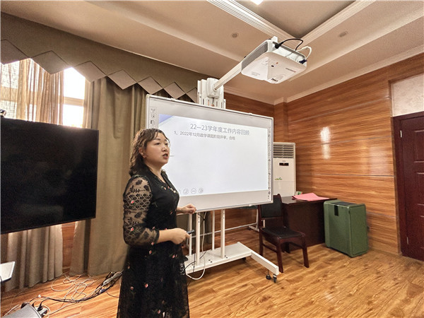 接着,何主任对本学年的科研工作进行安排,并重点指出:微课题是一个聚焦小、可长期深入开展的、有价值的教学研究途径。她希望课题组老师们能一如既往地钻研,做到真正落地生根,解决教学中的实际问题。