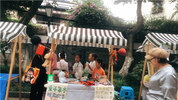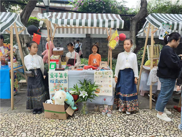 近日,成都高新区芳草小学南北区五、六年级40多名同学报名参加了国庆火烧堰市集摊位经营活动。