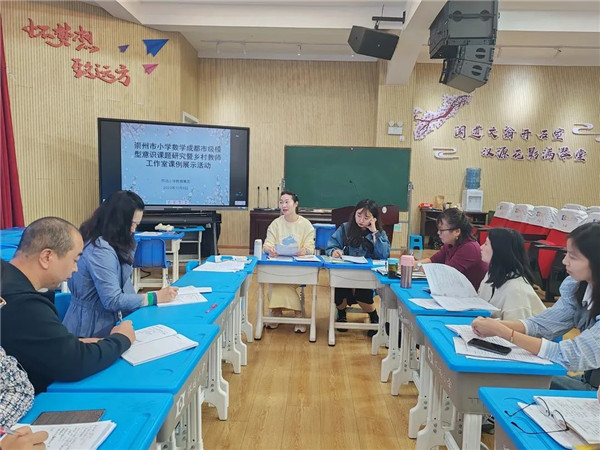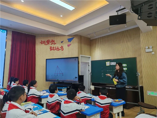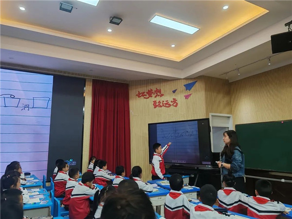 秋雨绵绵,教研正当时。为推进成都市级课题《培养小学生模型意识的课例研究》研究工作,2023年10月8日上午,课题负责人、崇州市教培中心小学数学教研员陈红老师,课题组主研人员以及崇州市小学数学乡村教师工作室部分成员相聚怀远小学教育集团,以课题《培养小学生模型意识的课例研究》为载体,开展了课堂研究活动。 第一节课由怀远小学教育集团王羽佳老师执教《数图形的学问》,王老师以动画“鼹鼠钻洞”为情景,引导学生明白题意,再让学生用画线段图来表示鼹鼠钻洞、菜地旅行的路线,把生活中的实际问题转化成数线段的数学问题,引导学生有序思考、发现规律,让学生找到解决问题的“通法”,建立解决数线段类题目的基本模型,再由模型去解决一类问题:数三角形、数角、生活中的握手情况以及在六年级要学的比赛场次等,做到了知识的结构化。