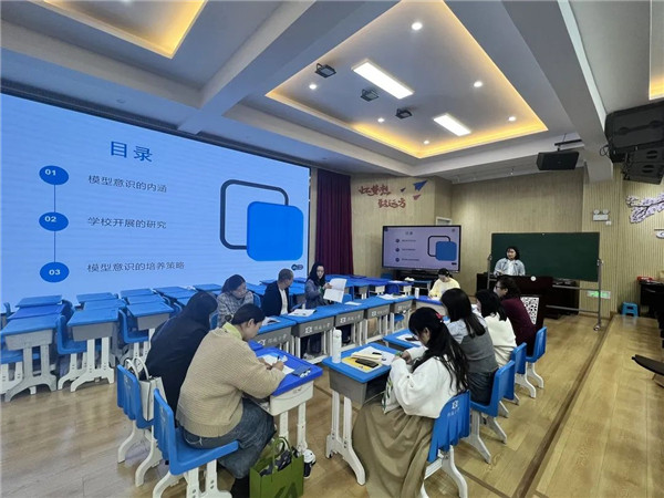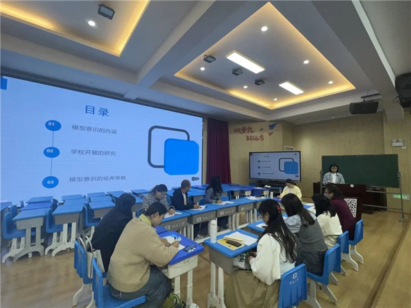 接着进入研讨分享环节,首先由怀远小学教育集团戚群瑶老师分享了模型意识校本子课题研究方案,并结合王羽佳老师的课例进行了深入的分析,谈到了学校教研团队在课题研究方面作出的努力;蜀南小学李竽颖老师就学校团队在模型意识方面对课时内容的整体框架的设计、依据、环节设计、作业设计等方面说明学校团队在模型意识方面的一些研究思考和方向。