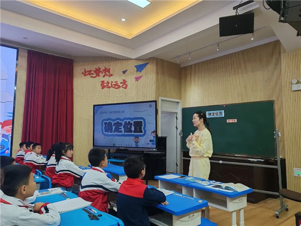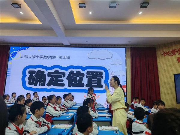 第二节课由蜀南小学张诗语老师执教《确定位置》,张老师的课由真实情境贯穿整堂课,结合现实生活经验,引导学生在游戏中学习新知,借助课件演示,让学生经历数对的抽象过程,体会数对与方格纸上的点的对应关系。同时加以精心设计的练习,知识性、趣味性并存,层层递进。学生积极活跃,课堂气氛浓厚。