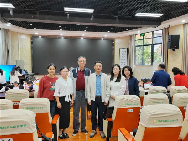众多专家和老师们来到庆安小学,分别是省特级教师阎小雄老师;省教科院附属实验小学后勤主任严洁老师;双流区信息技术教研员王鹏老师;双流区科学教研员周玉老师;省教科院附小评价中心主任蒋洁老师。