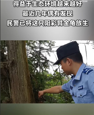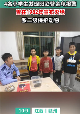 近日,江西赣州,4名小学生在篮球场的水泥地上发现一只漂亮的甲虫,造型独特,遂送到了黄陂派出所。经鉴定,确定该甲虫为国家二级保护动物阳彩臂金龟,这是我国特有品种,是最大的甲虫之一,曾在1982年宣布灭绝,得益于生态环境改善,最近几年偶有发现。目前,民警已将这只阳彩臂金龟带到野外放生。