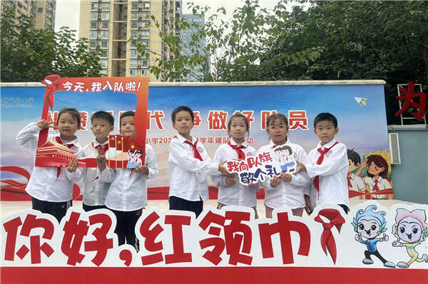 少先队员们在队旗下庄重地宣誓,队员们的笑容天真烂漫,入队的誓词铮铮回响。二年级的新队员代表分享了自己作为新队员的喜悦和责任,下定决心要继承少先队光荣的革命传统,争做新时代的好少年。