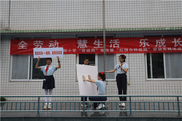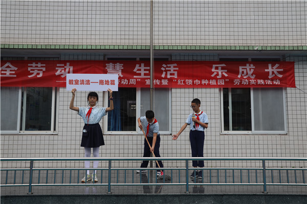 10月9日,成都市马鞍小学校在集体朝会时开展了劳动周宣传暨“红领巾种植园”劳动实践活动。