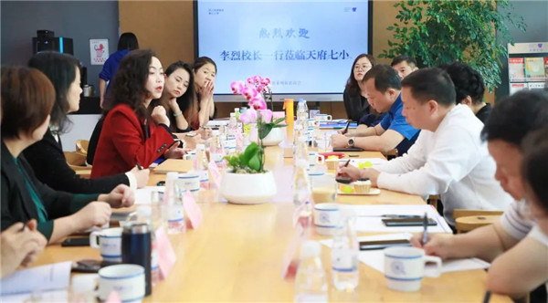李烈校长作为朱娅君校长在“成都市未来教育家”培养对象中的实践导师,走进天府七小,感受柒小娃在“儿童城市”中精彩的一天,对学校工作进行交流指导。