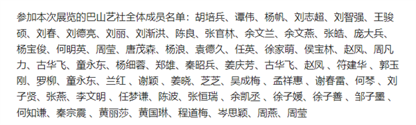 参加本次展览的巴山艺社全体成员名单