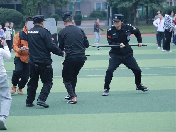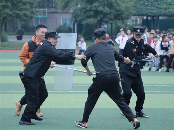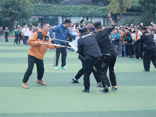 为了进一步加强校园安全建设,提升全校师生及安保团队应对校园突发暴力事件的能力,10月30日,成都市泡桐树小学绿舟分校举行了一场针对暴徒冲击学校的防暴应急演练。