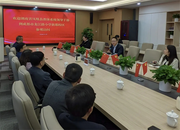 2024年11月10日,成都市龙江路小学新都校区迎来了湖南省凤凰县教体系统教育同仁一行25人的参观交流。此次活动围绕教育数字化转型及AI时代教育发展进行深入探讨与交流,在热情融洽的氛围中取得了圆满成功。