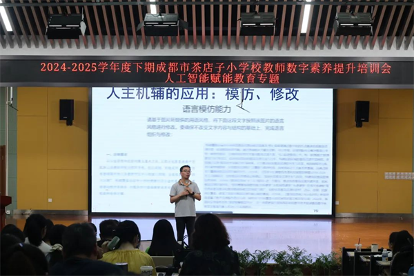 为深化教育教学改革,探索人工智能技术赋能课堂创新的有效路径,7月3日,成都市茶店子小学校全体教师齐聚阶梯教室,参加了“人工智能赋能教育”专题培训。