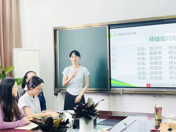 近日,成都市浣花小学成功举办了“青蓝相接,携手同行”师徒结对仪式。