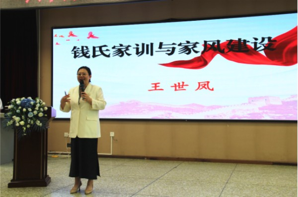 活动重头戏由省直机关党校哲学·社会学教研部副主任、副教授王世凤主讲。她从《钱氏家训》解析入手,深入浅出地探讨家训对社会、国家及家庭的意义,并通过自身家风传承实例,为在场师生锚定“家风”的种子,激励其在家庭中生根发芽。