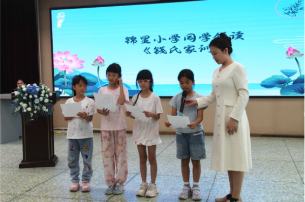 随后,学生们齐声朗读《钱氏家训》,清脆的童声如春溪流淌,蓬勃的朝气感染全场。来宾们纷纷加入朗读行列,共同感受千年家训的文化力量。