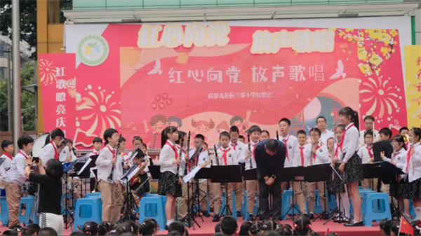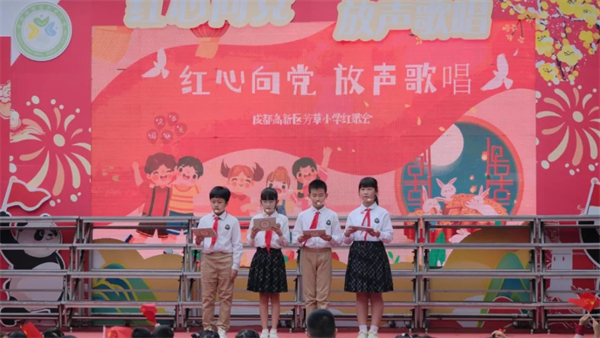 金秋送爽,万里河山披锦绣;丹桂飘香,一轮红日耀东方。为庆祝中华人民共和国成立76周年,成都高新区芳草小学全体师生欢聚一堂,开展“红心向党、放声歌唱”主题红歌会活动。这既是对祖国的礼赞,更是学校“适性·芬芳”办学理念下,以美育人、以德化人的生动实践。作为学校特色,合唱让家国情怀随音符植根心田。