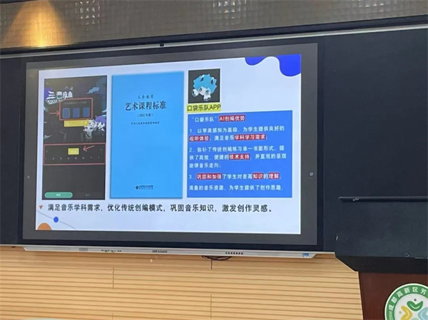在培训过程中,陕昌群给老师们展示了如何利用各类AI技术辅助教学,提升课堂效率与学生参与度,如“5G+智慧教育模式”、虚拟实验室、“AI+学科”模式、基于互联网的混合式分层模式、电子白板技术深入应用等。还分享了一些AI技术融入课堂的实践案例,其中关于“玩转音乐课堂的AI创编”引发老师们浓厚的学习兴趣,老师们在愉快的氛围中深入领会了教育与互联网相结合的重要性。
