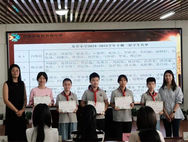 陈婷婷副校长为优秀班主任颁奖,李娜副校长为优秀值周教师颁发荣誉证书,每一张奖状背后,都是师生们用汗水诠释的芳草精神,致敬教育一线的坚守者们。