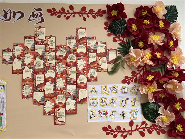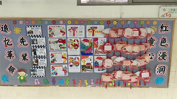 各班级将外墙毛毡板打造成“红色历史课堂”,聚焦“纪念中国人民抗日战争暨世界反法西斯战争胜利80周年”,通过丰富的历史图片与感人故事,使“爱国主义”化为可感可学的精神力量,让红色基因在学生心中深深扎根。