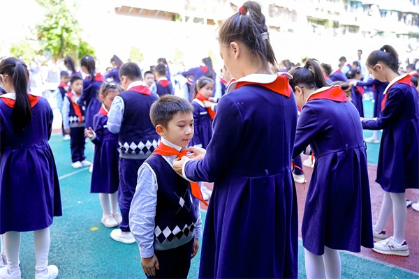 活动在庄严的中国少年先锋队队歌声中拉开帷幕。仪式上举行了新队员入队仪式,老队员为新队员佩戴上鲜艳的红领巾,全体队员在队旗下庄严宣誓,铿锵誓言展现了新时代少先队员听党话、跟党走的坚定决心。