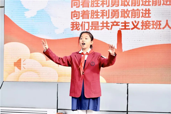 随后,学校少工委主任任萍校长致辞,任萍强调:“强国复兴有我,不仅仅是一句口号,更是时代赋予你们的光荣使命。希望你们坚定理想信念,勤奋学习,锤炼品德,用实际行动践行‘请党放心,强国有我’的誓言!”