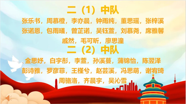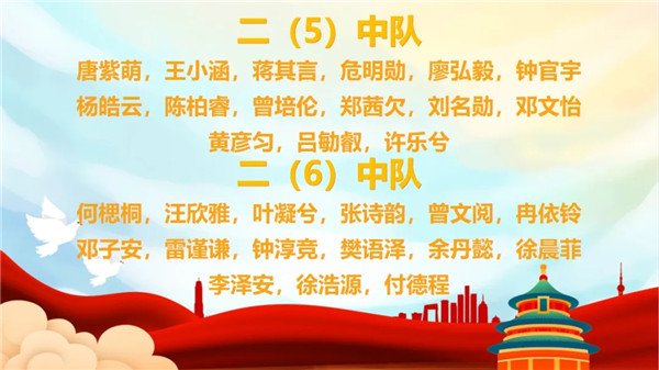 紧接着,大队辅导员唐源老师宣读了新队员入队名单,又有一批同学加入了中国少年先锋队。在队旗下,新队员庄严宣誓,老队员重温誓词:“我是中国少年先锋队队员……准备着,为共产主义事业贡献力量!”